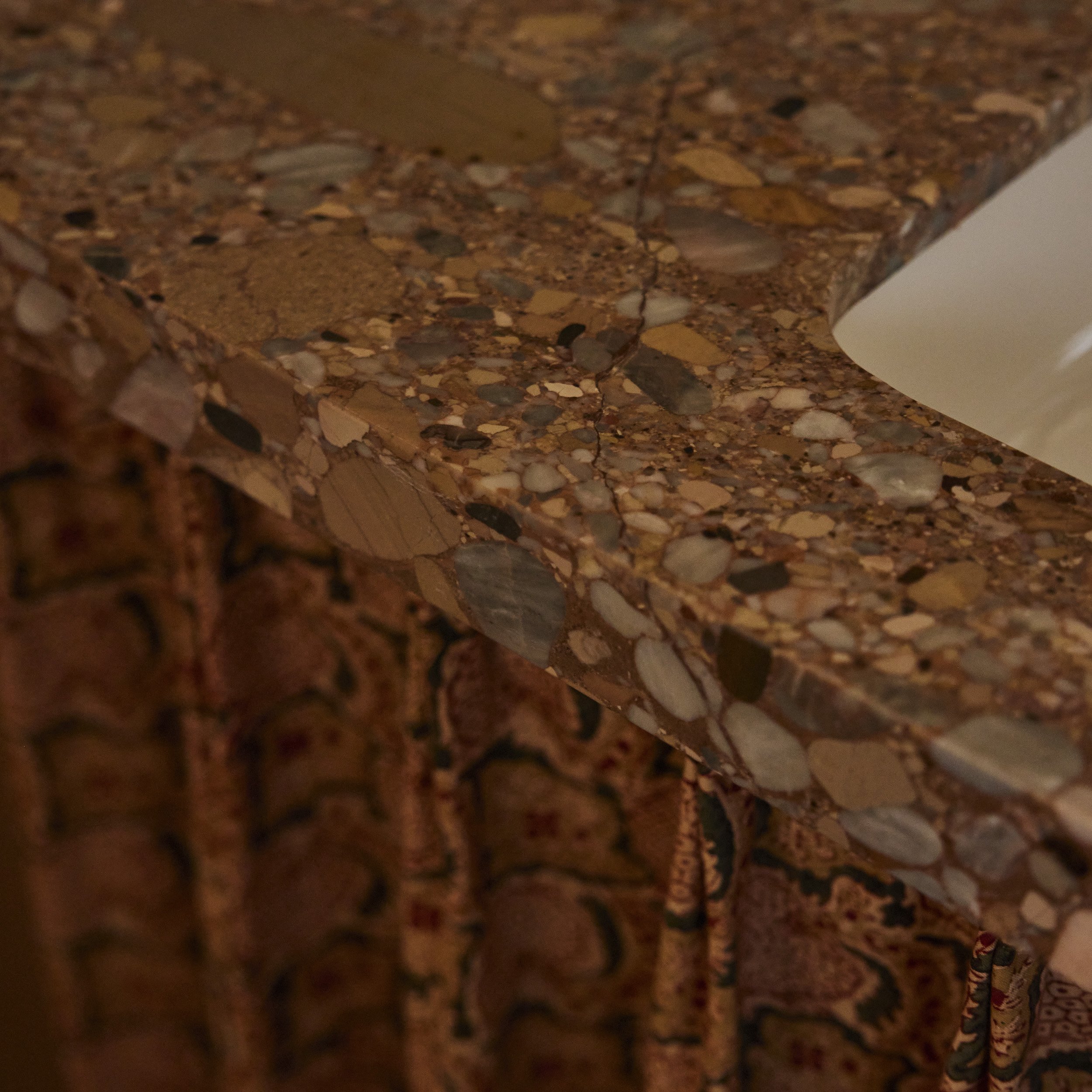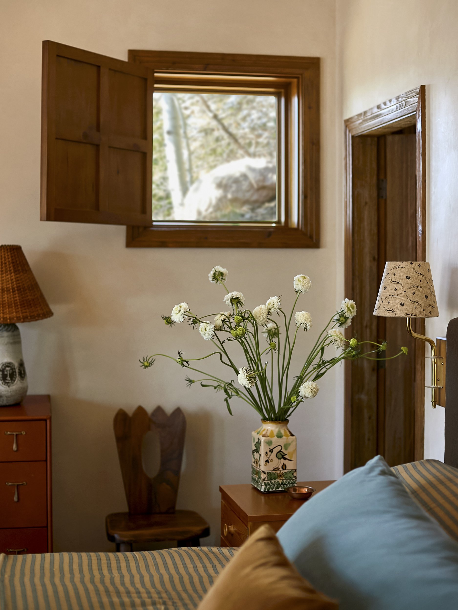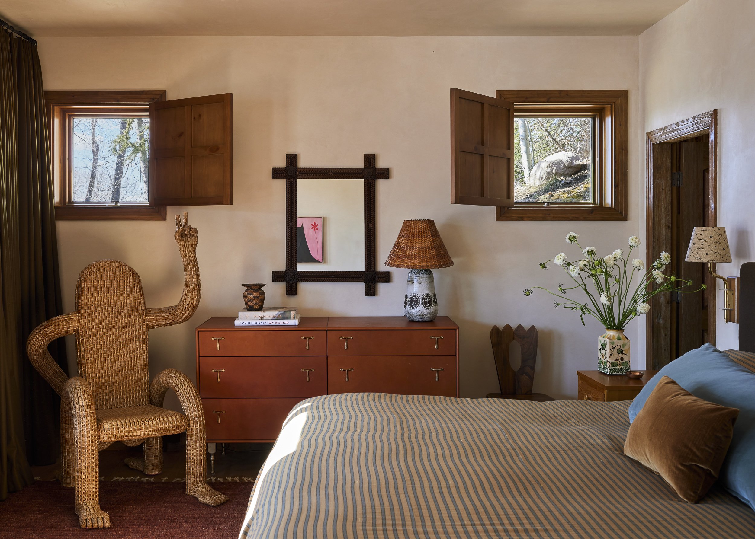 “A HAND-CARVED WOOD TRIM BY ARTIST NIK GELORMINO WRAPS THE LOFTY SPACE”